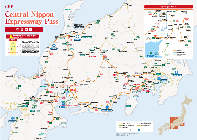 일본 중부지역의 고속도로에서 CEP를 이용하여 마음껏 일본 중부지역의 고속도로를 이용해 보세요.